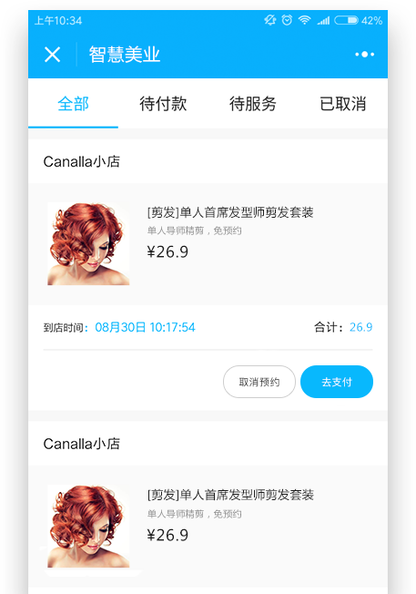 顾客在线预约服务和到店时间,通过预约中心,你可以管理