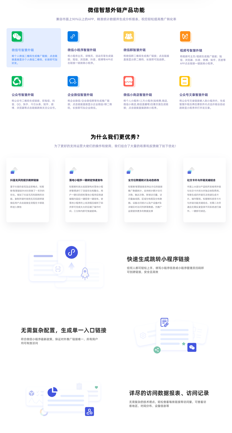 知客鲸·智慧链接是知客鲸科技根据2021年研发的源码版外链跳转工具的经验及运营场景和大量的用户反馈全新研发的智慧链接引流工具,全新的底层及理念让用户更加合理高效的进行引流卡片及连接的创建。
