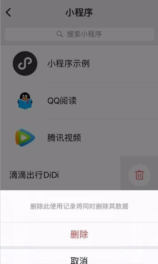 在小程序页面中,用户可以删除小程序并删除使用记录,用户的小程序数据也会被删除。