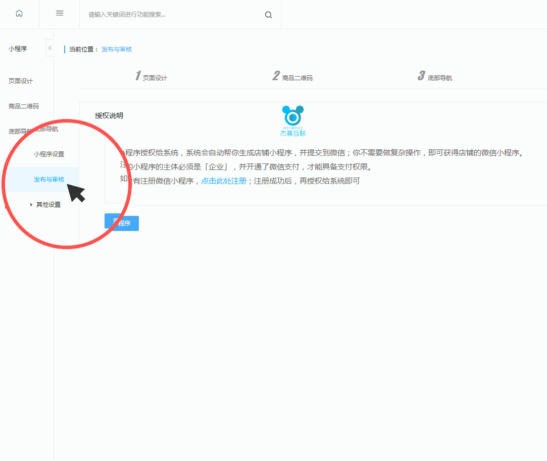 在商城后台菜单中增加小程序独立菜单,您可一键访问小程序设置页面,快速进行小程序相关设置。