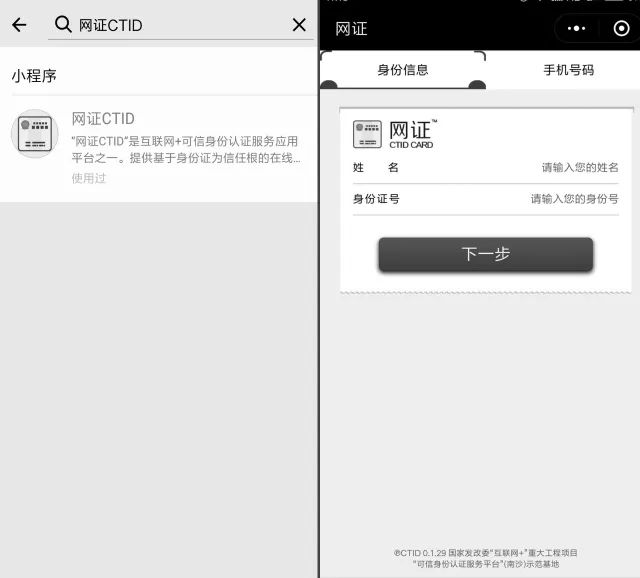 打开微信小程序“网证CTID”