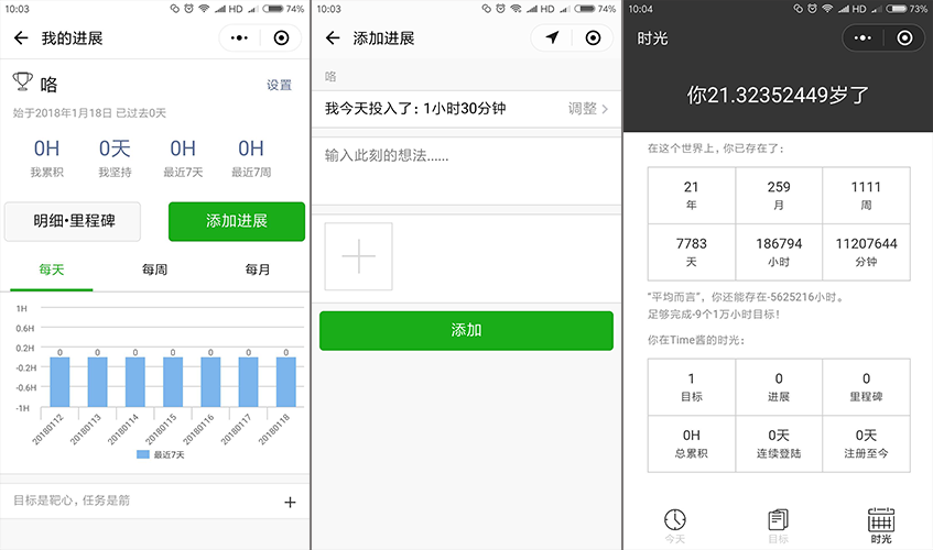 操作步骤:进入Time酱小程序,添加目标;可以添加每日进展、每日为实现目标所做行为的计时、在目标任务栏查看目标的具体进展、时光任务栏查看你的累计数据。超实用的效率管理小程序。