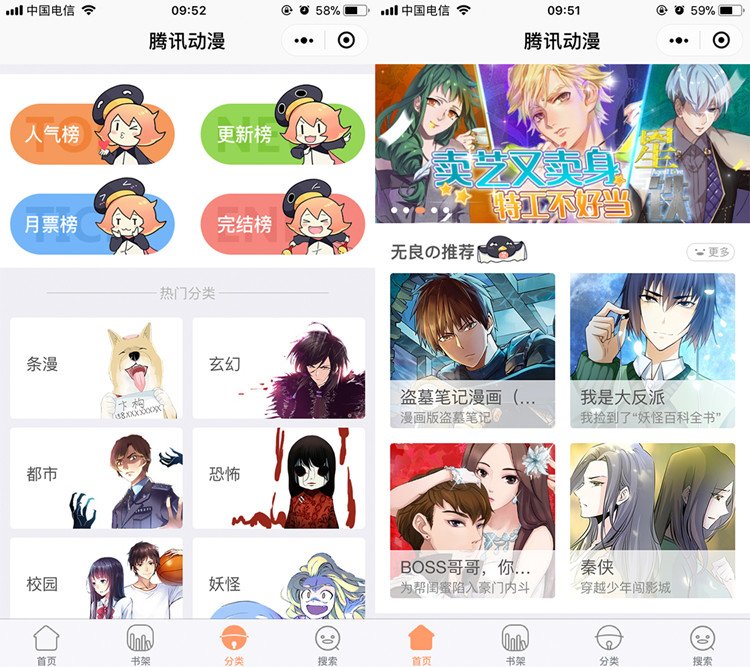 这个小程序是中国最大的互联网动漫平台——腾讯推出的一款产品,平台上的漫画内容不仅多还全,而且是正版喔。
