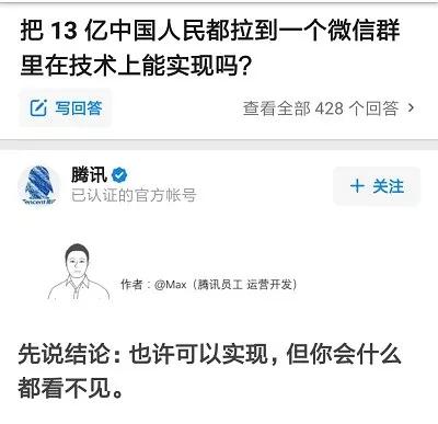 近日有网友在知乎提出了一个脑洞很大的问题:把13亿中国人拉到一个微信群在技术上能实现吗?没想到腾讯官方真的对此进行了回复,一起来看一下到底会发生什么吧。