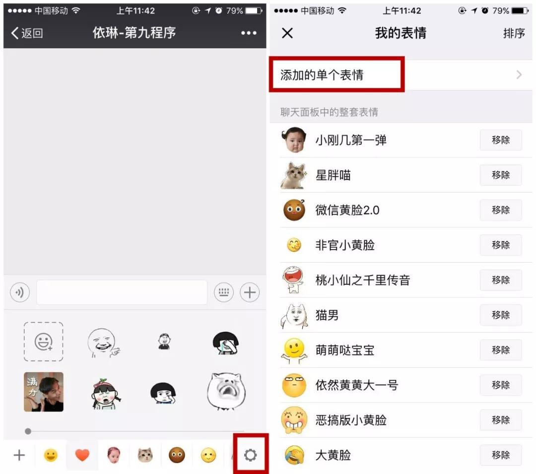 我们打开「 自定义表情包 」首页会发现「 添加表情包 」的按钮不跟以前一样了。