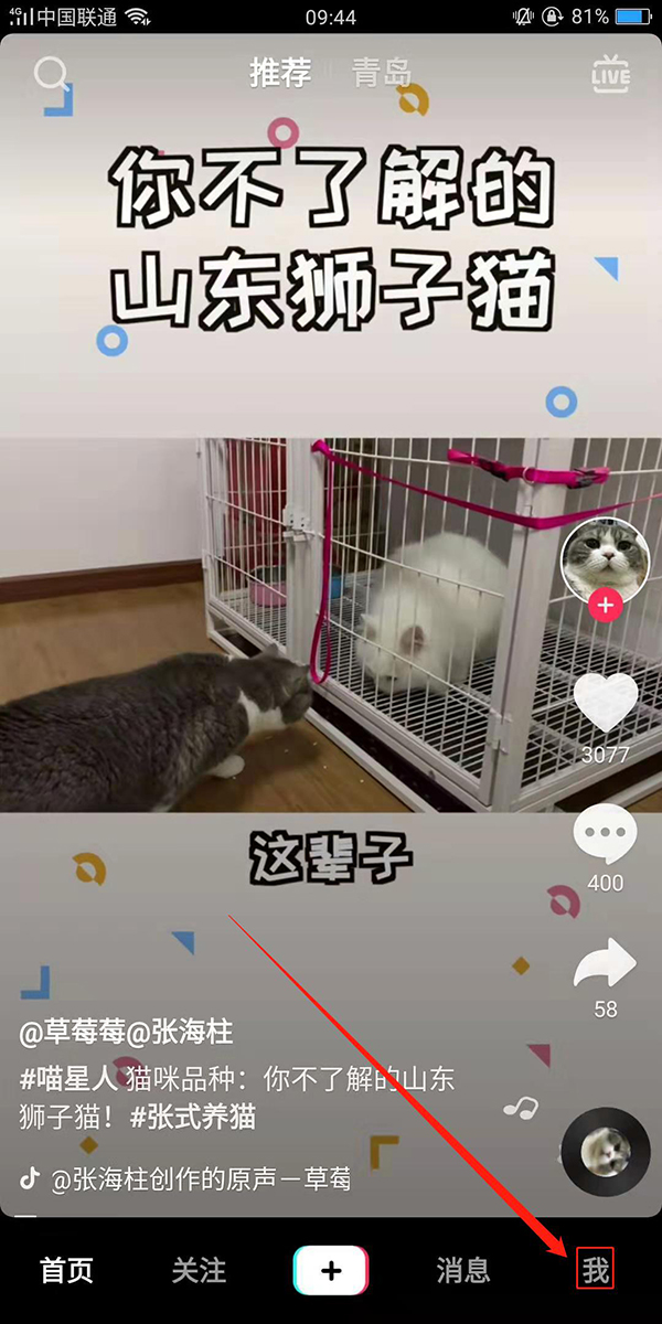 我们在抖音软件主界面,点击右下角的“我的”标签。
