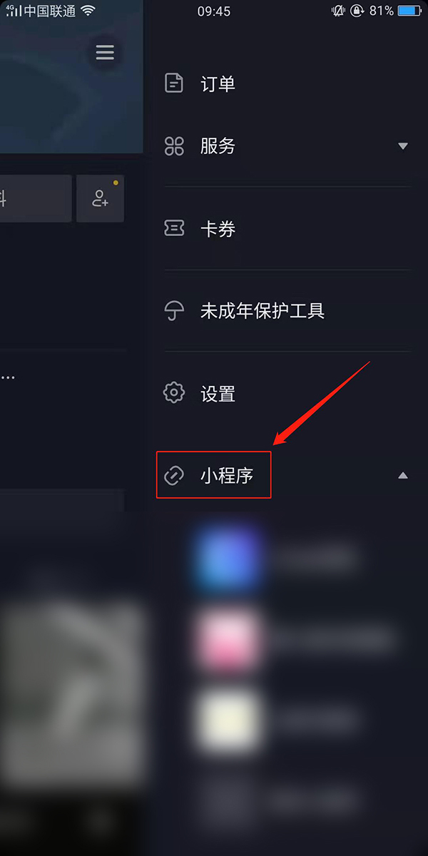 接下来就会打开抖音的设置页面,在页面中我们找到“小程序”的菜单项。